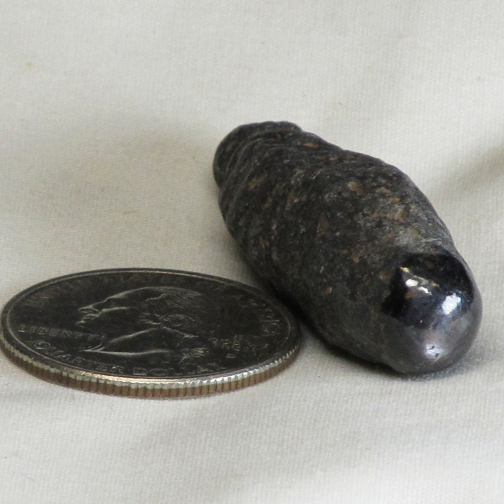 An outstanding natural purple corundum sapphire from Sri Lanka.  One end has been polished to show the beautiful color.  Weighs 17 grams.  Size:  1 5/8" long x 1/2" wide.