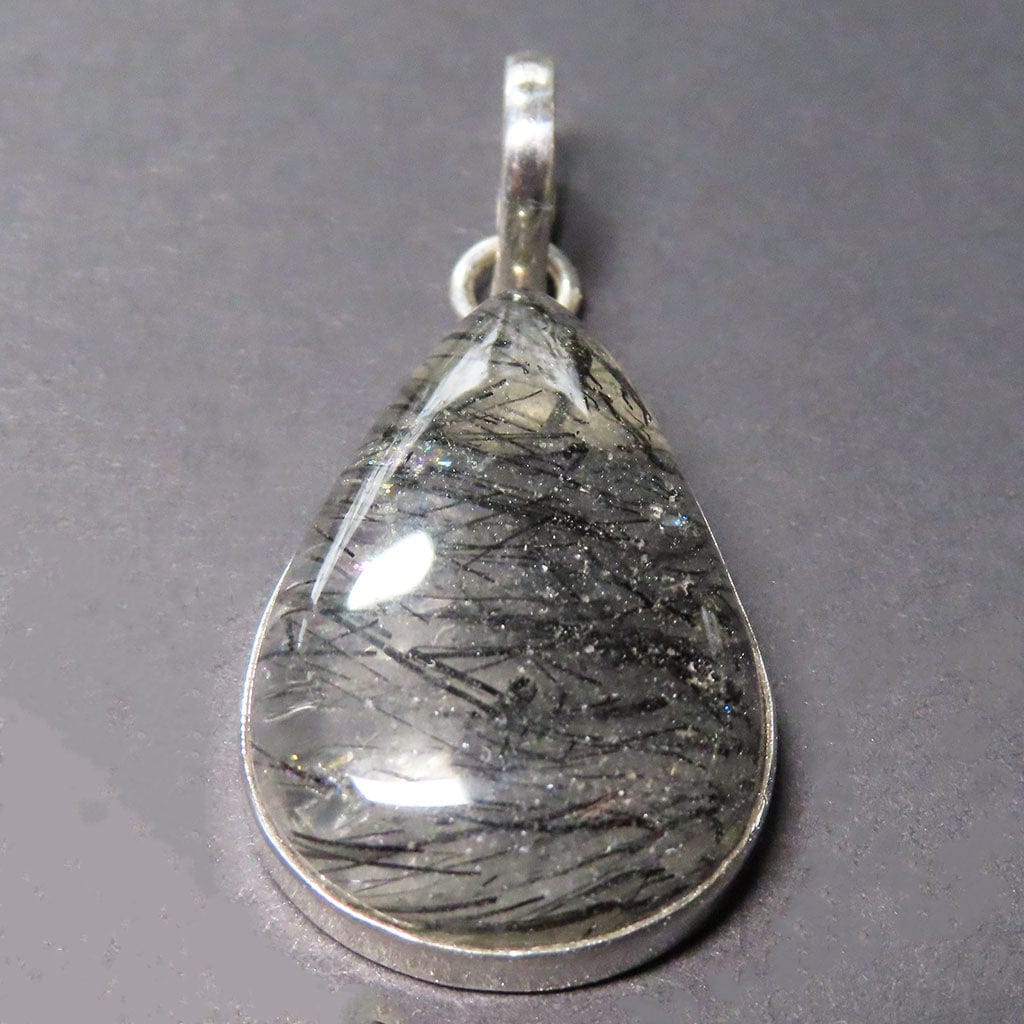 Un maravilloso colgante elaborado con una lágrima pulida de turmalina negra sobre cuarzo transparente de Brasil, engastada en plata de... Leer más...