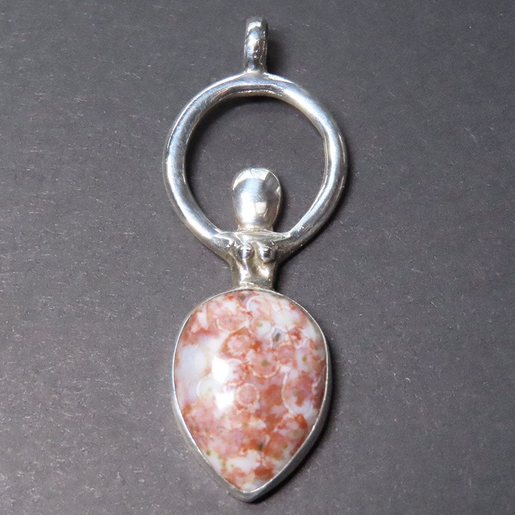 Un maravilloso colgante elaborado con una pequeña diosa de plata de ley, adornado con un cabo de jaspe oceánico de... Leer más...