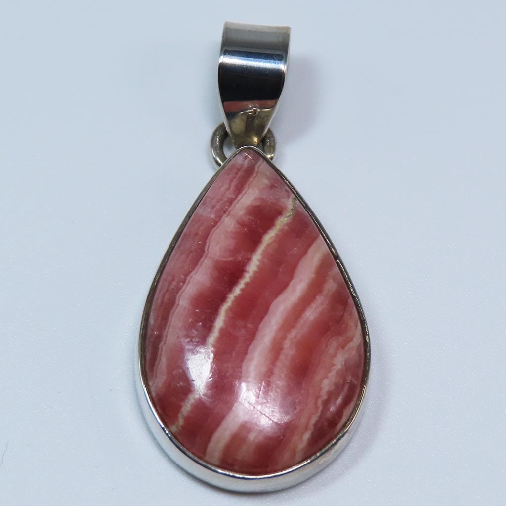 Hermoso colgante elaborado con un cabujón de rodocrosita pulida en forma de lágrima, procedente de Argentina, engastado en plata de... Leer más...