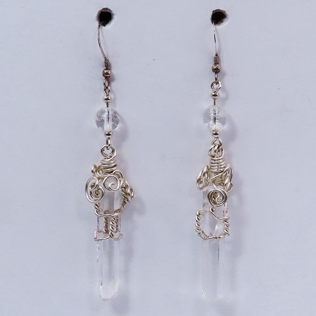 Un maravilloso par de aretes hechos con puntas de cristal de cuarzo muy transparente de Arkansas, envueltos en alambre y... Leer más...
