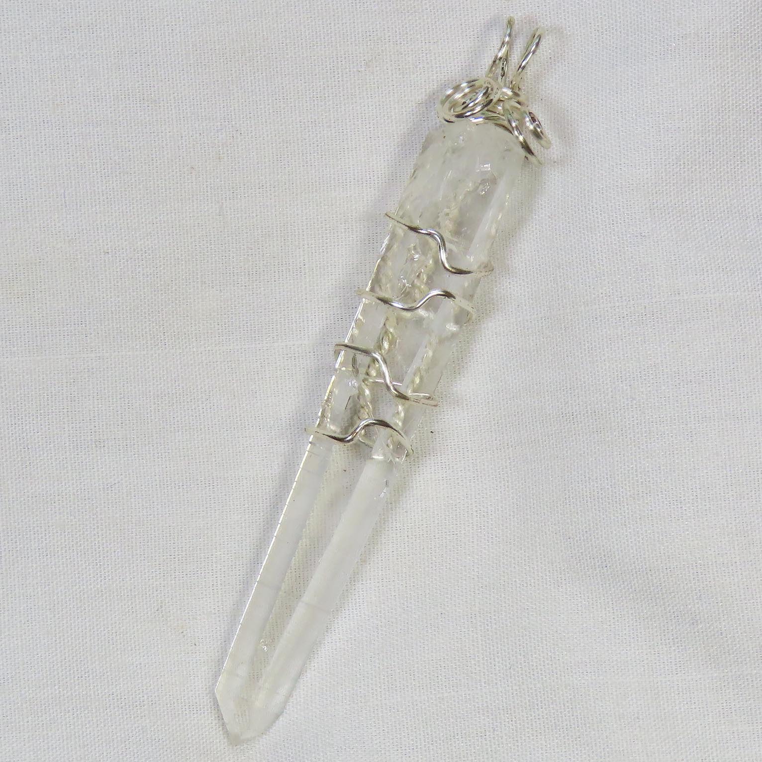 Un maravilloso colgante envuelto en alambre hecho con una punta de cristal de cuarzo transparente de Arkansas y terminado con... Leer más...