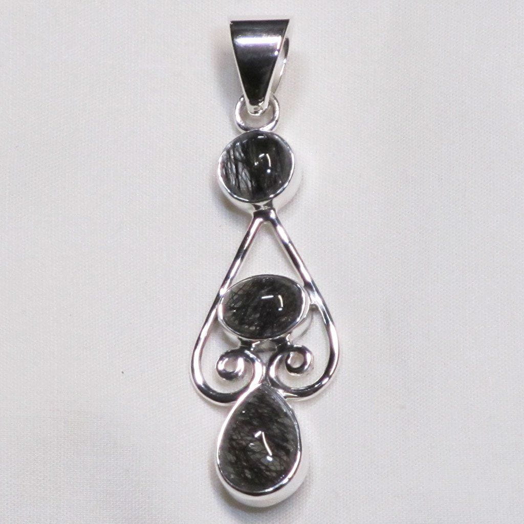 Un hermoso colgante hecho de 3 cabinas pulidas de turmalina negra en cuarzo transparente de Brasil engastado en plata de... Leer más...