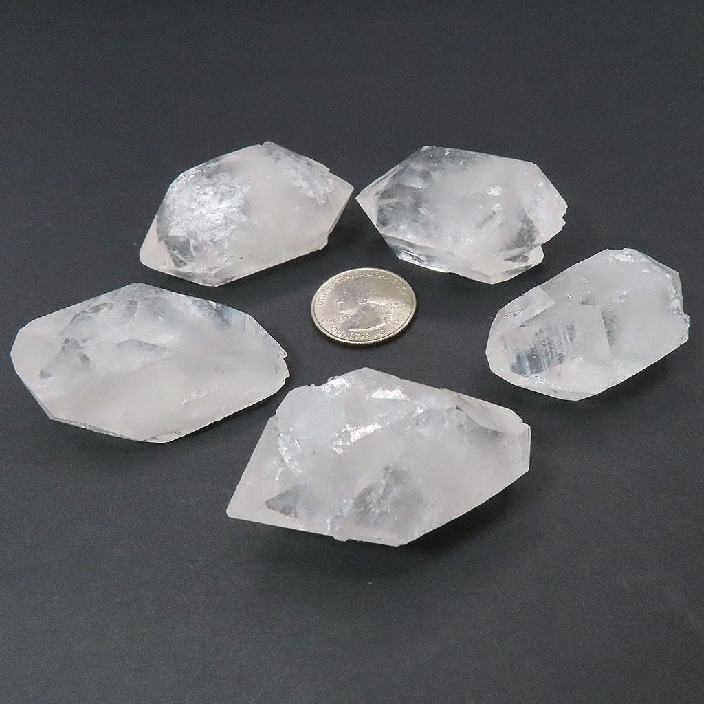 Una maravillosa selección de 5 puntas de cristal de cuarzo transparente/turbio estilo "Arkimer" con doble terminación. Presentarán alguna pequeña abolladura,... Leer más...