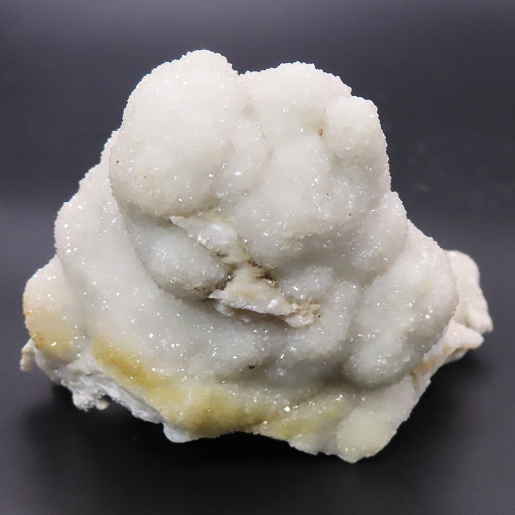 Un fabuloso espécimen de cuarzo drusa botrioidal blanco brillante procedente de Misuri, formado sobre ágata de encaje. Presenta una pequeña... Leer más...