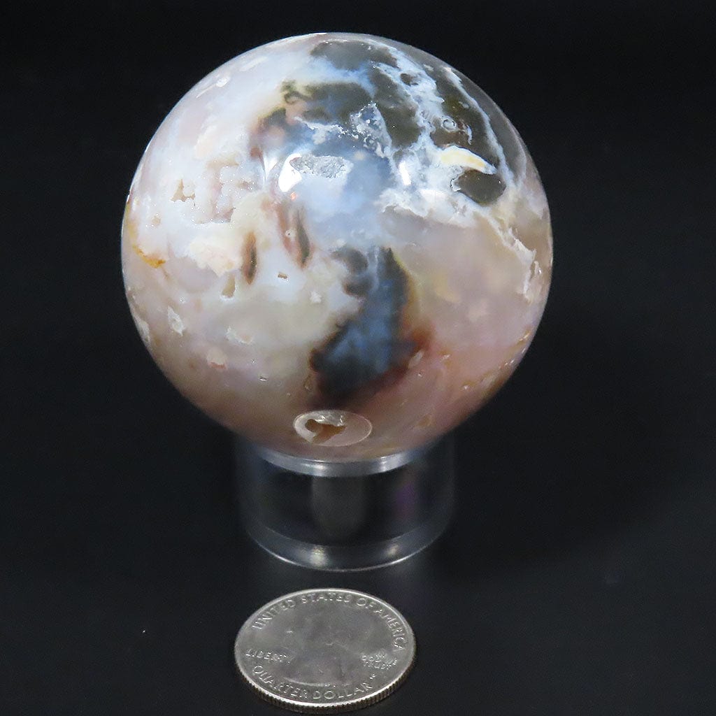 Una maravillosa esfera de calcedonia púrpura pulida a mano procedente de México, con un magnífico color y diseño, y pequeños... Leer más...