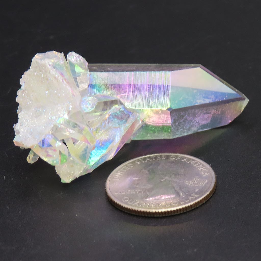 Un hermoso grupo de cristales de cuarzo Opal Aura (mejorado con platino) procedente de Arkansas, con activación por enlace temporal... Leer más...