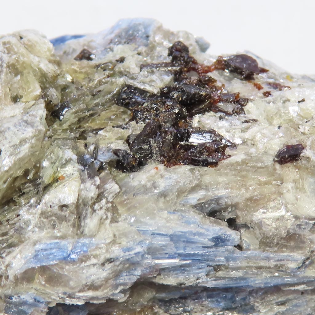 Maravilloso conjunto de hojas de cianita azul incrustadas en una pequeña cantidad de cuarzo con mica y una pequeña cantidad... Leer más...