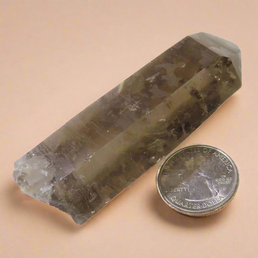 Una maravillosa punta de cristal de cuarzo ahumado de color natural de Brasil. Pesa 3,5 oz. Tamaño: 3 1/4" de... Leer más...