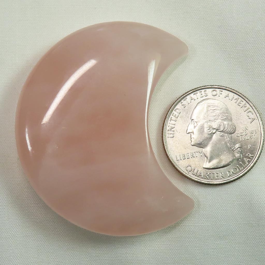 Una maravillosa pequeña luna creciente de cristal de cuarzo rosa pulido procedente de Madagascar que tiene buen color. Esta luna... Leer más...
