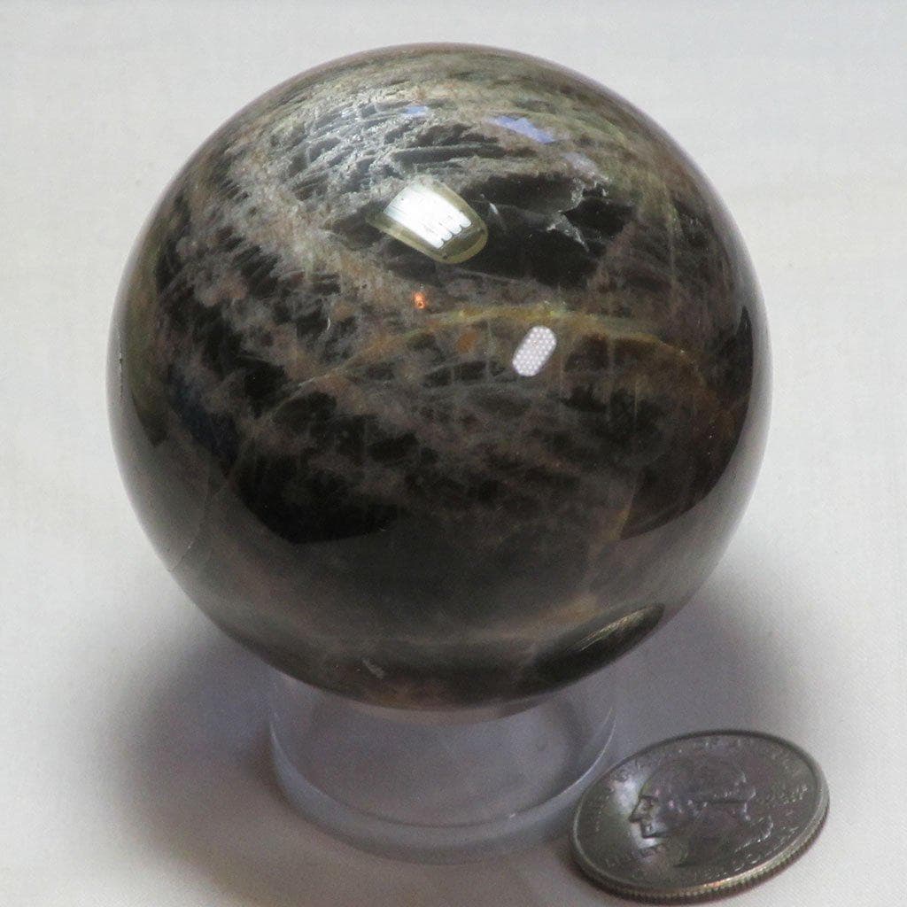Una maravillosa esfera de piedra lunar negra pulida procedente de Madagascar que tiene 2 buenas zonas de Schiller. Viene con... Leer más...