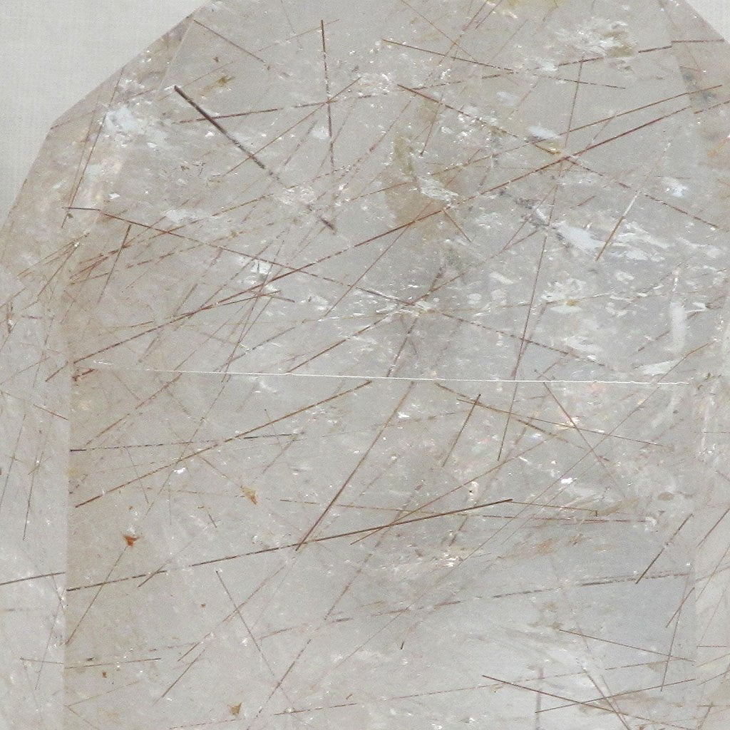 Una excepcional punta atigrada de cristal de cuarzo transparente pulido de Brasil que se incluye con agujas de rutilo rojo... Leer más...