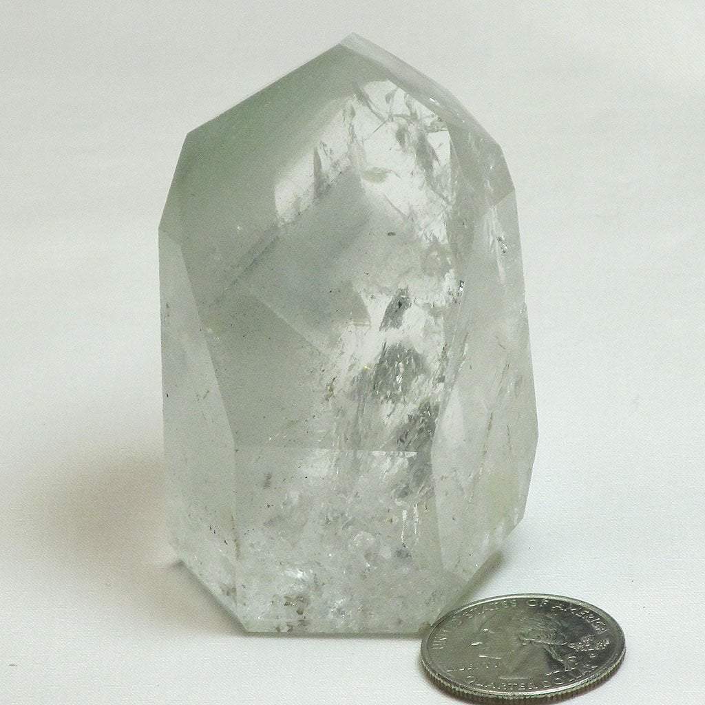 Una maravillosa punta de cristal de cuarzo transparente pulido procedente de Brasil que se incluye con múltiples fantasmas de manganeso... Leer más...