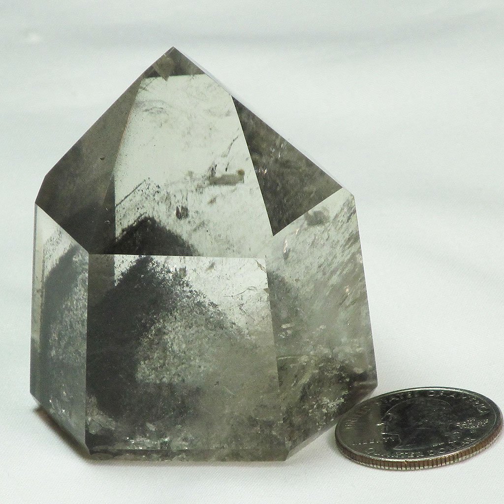 Una magnífica punta de cristal de cuarzo fantasma ahumado claro pulido procedente de Brasil. Este cristal muy hermoso se incluye... Leer más...