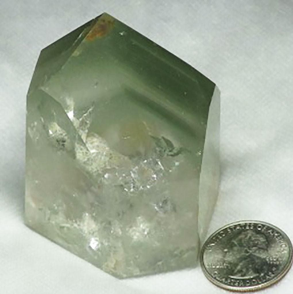 Una maravillosa punta de cristal de cuarzo fantasma pulido procedente de Brasil. Este cristal muy hermoso se incluye con múltiples... Leer más...