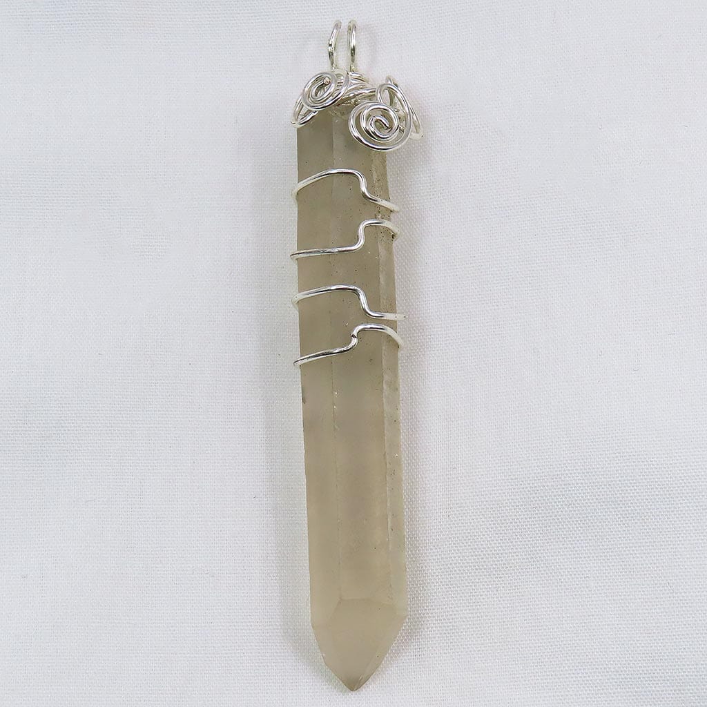 A fabulous wire wrapped pendant made with a light colored smoky Lemurian seed quartz crystal point from Brazil that is... Read more