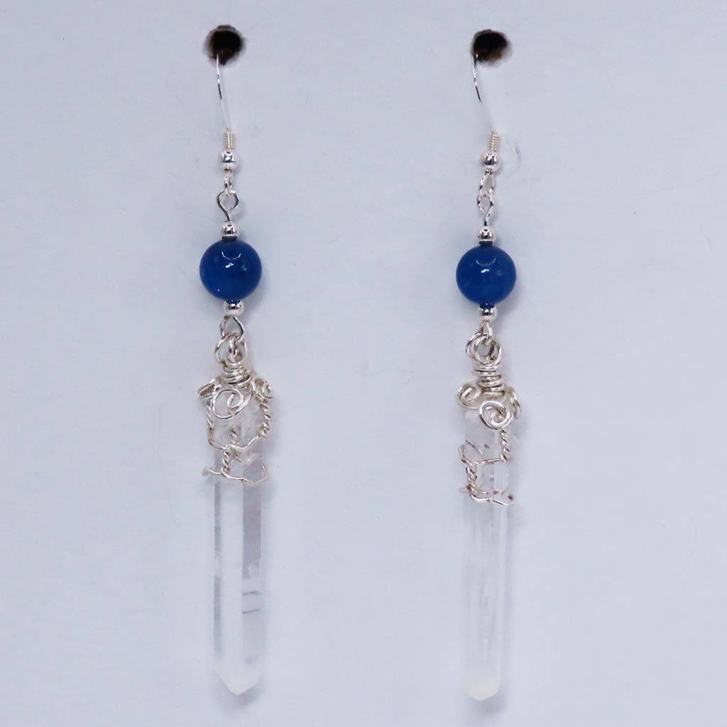 An outstanding pair of earrings made with clear Colombian Lemurian quartz crystal points with blue smoke tips that are wire... Read more