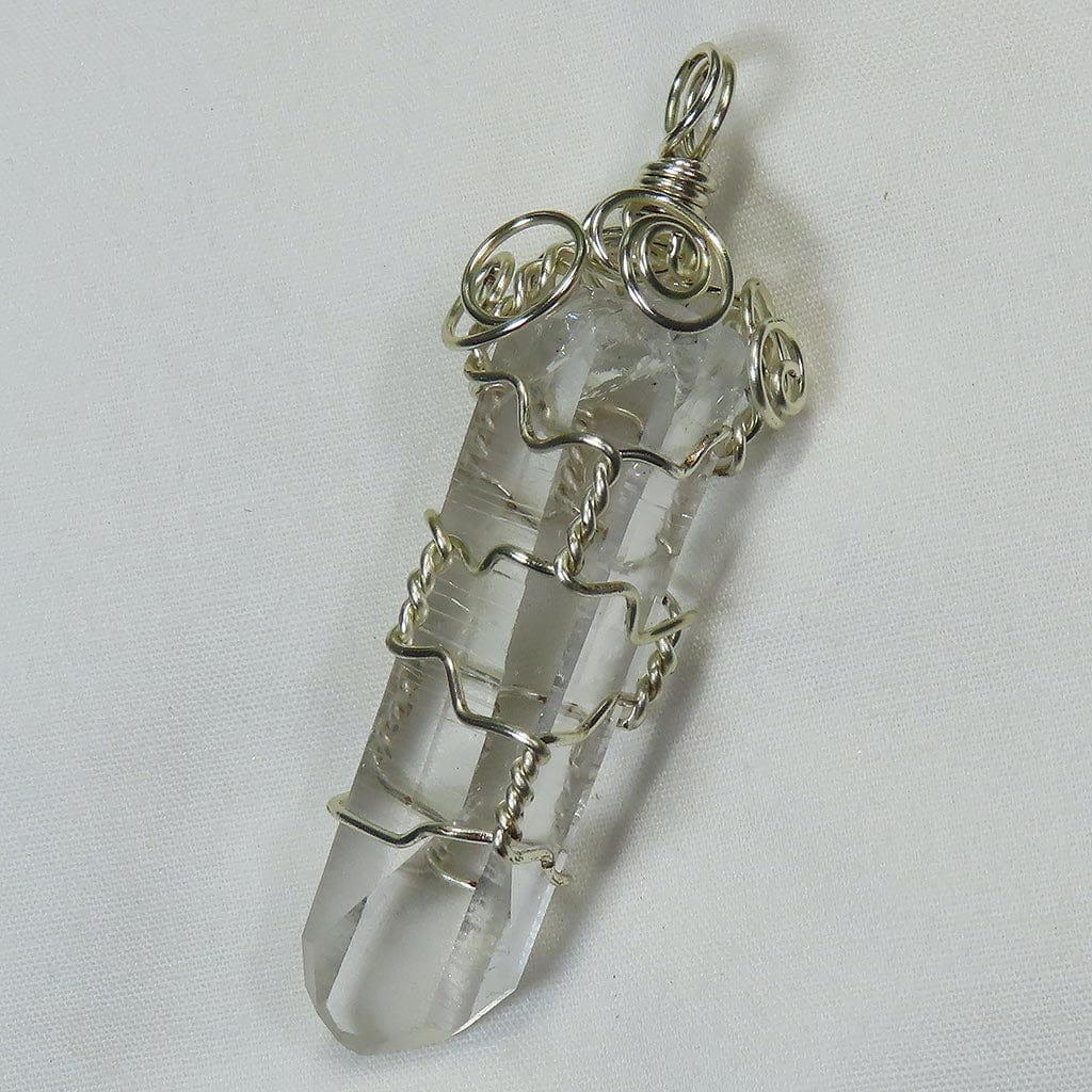 An outstanding wire wrapped pendant made with a water clear quartz crystal point from Arkansas that has an eight-sided grounding... Read more