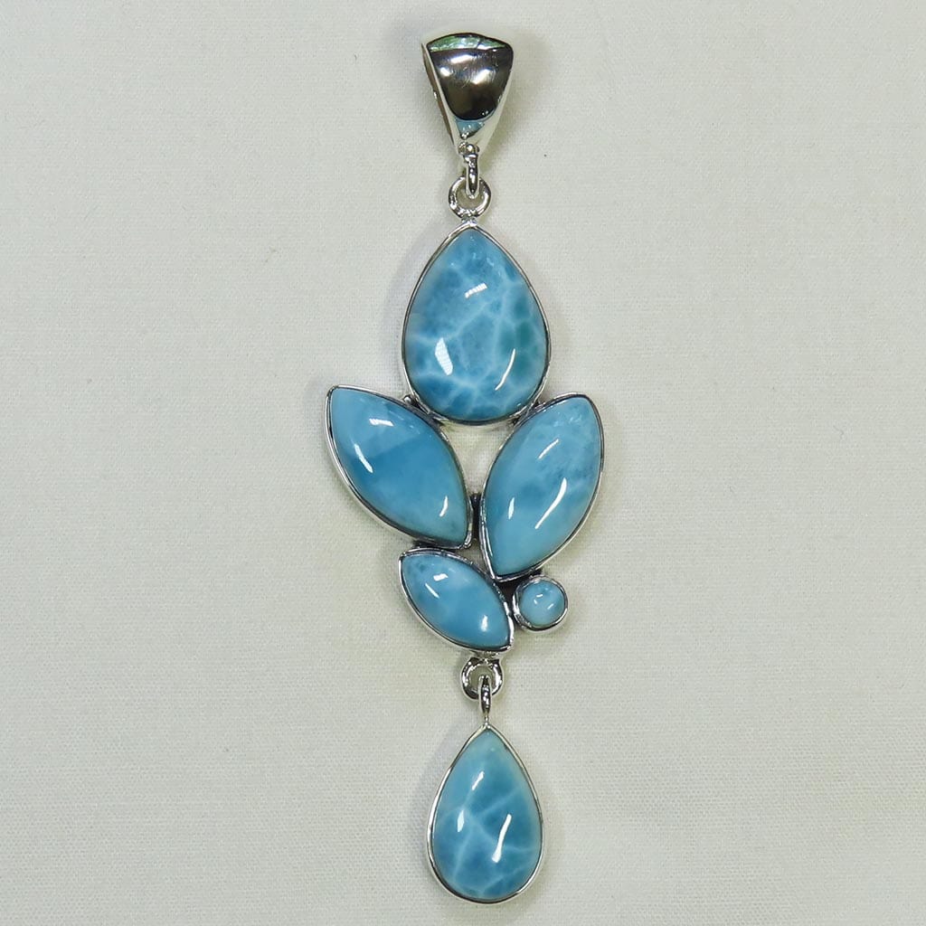 A fabulous pendant made with 6 polished very high-quality sky blue larimar cabs from the Dominican Republic that are set... Read more
