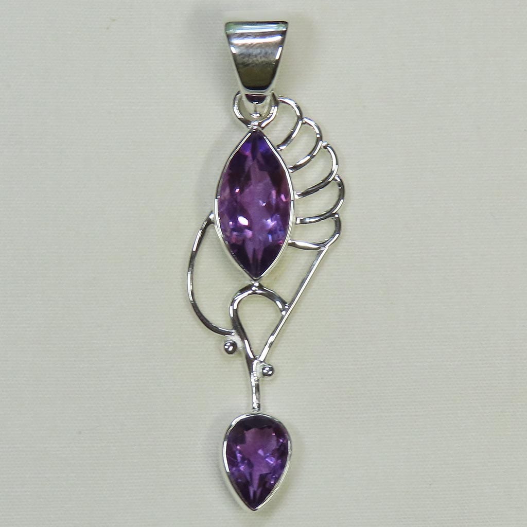 A marvelous pendant made with two faceted amethyst stones from Brazil that have very good color and are set in... Read more