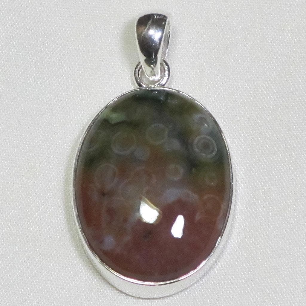A wonderful pendant made from a polished oval cab of ocean jasper from Madagascar that has a great color and... Read more