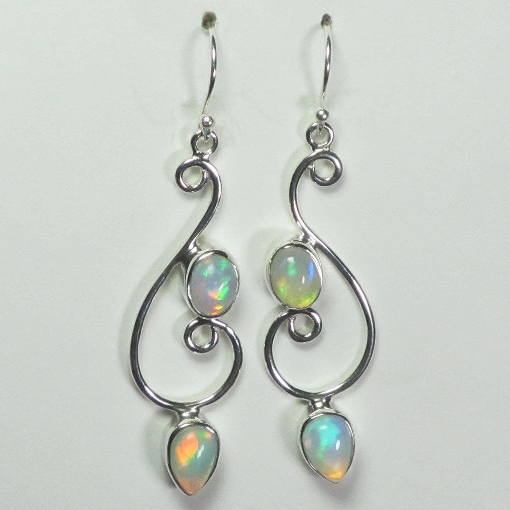 A magnificent pair of earrings made with four polished Welo opal cabs that have blue/green/red fire and are set in... Read more