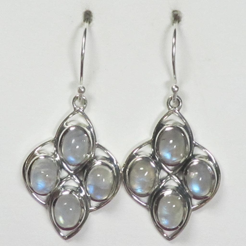 An outstanding pair of earrings made with eight polished rainbow moonstone oval cabs that have very good blue color flash... Read more