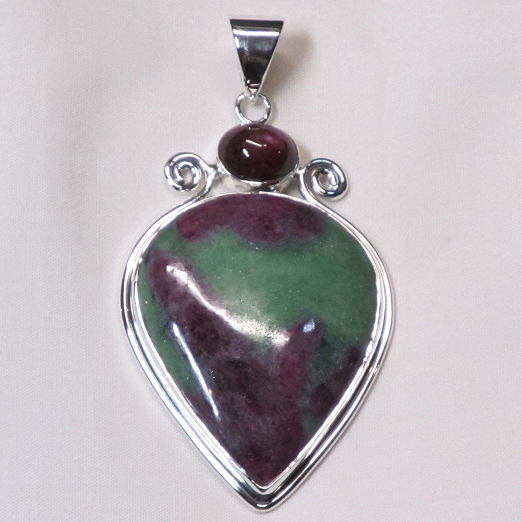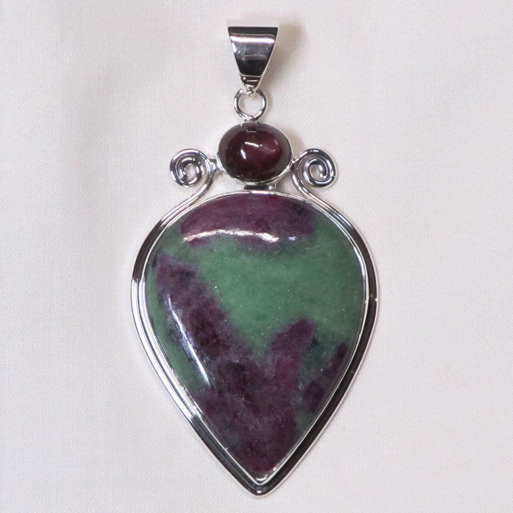 An outstanding pendant made with a large polished cab of ruby in zoisite from India that is accented with a... Read more