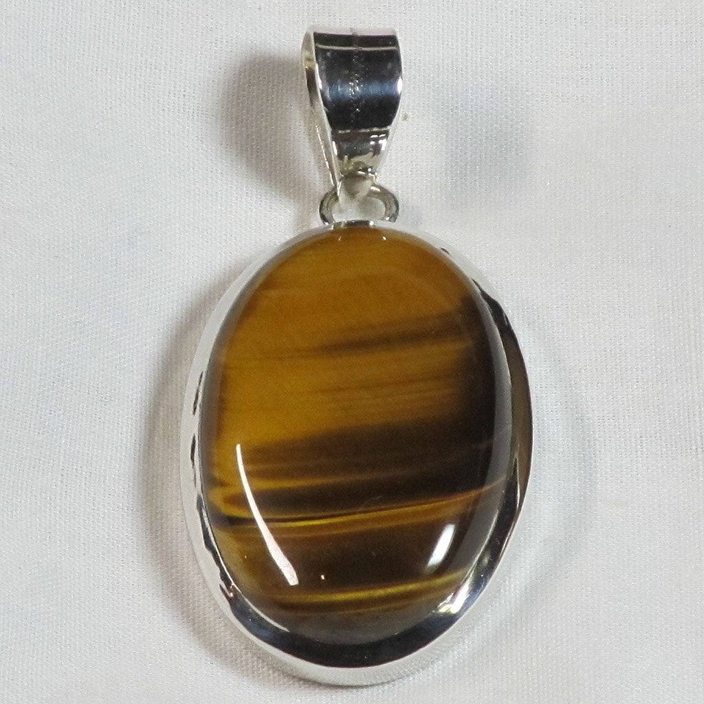 A marvelous pendant made with a polished oval cab of gemmy golden tiger eye that is set in smooth style... Read more
