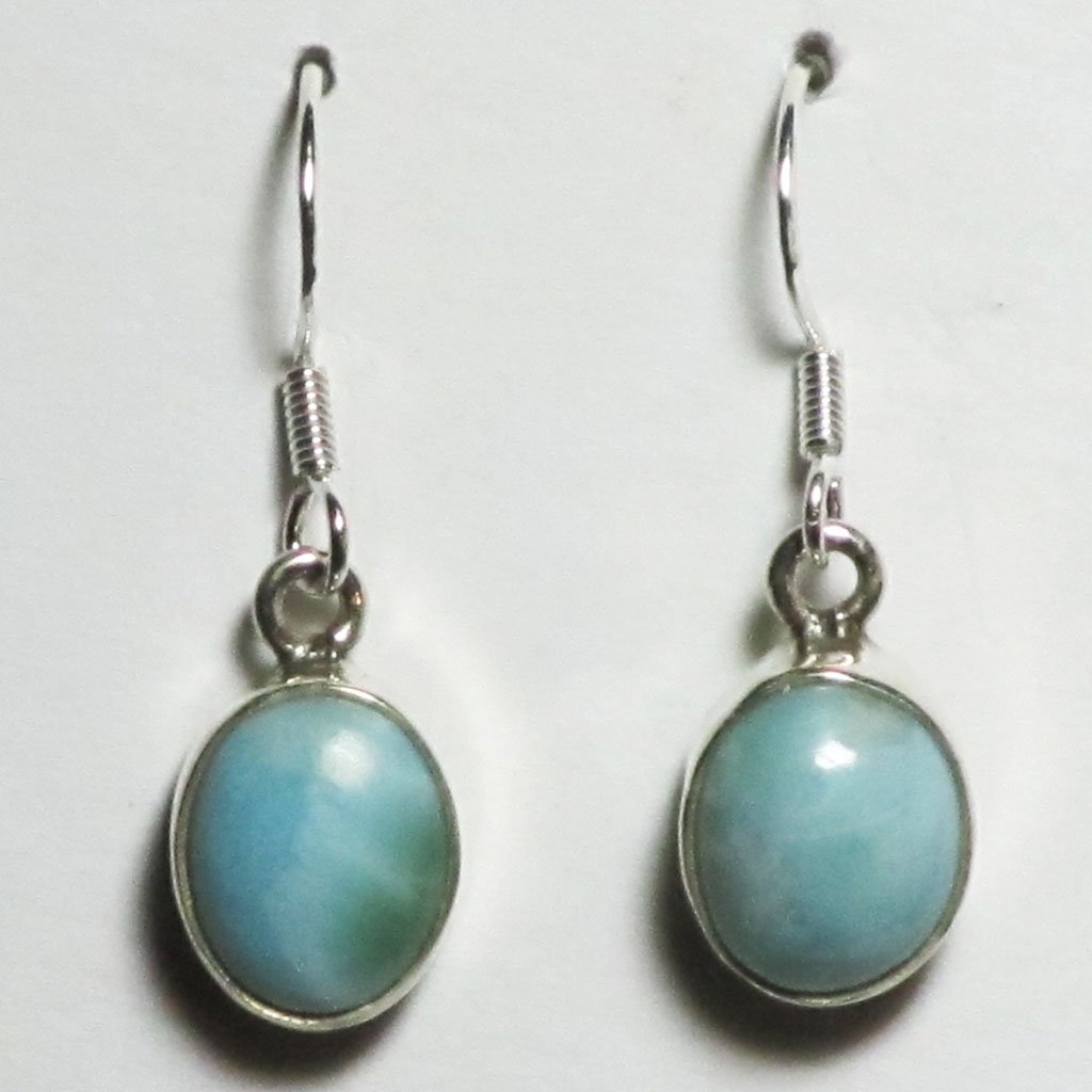 A very beautiful pair of earrings made with polished oval cabs of sky blue larimar that are set in smooth... Read more