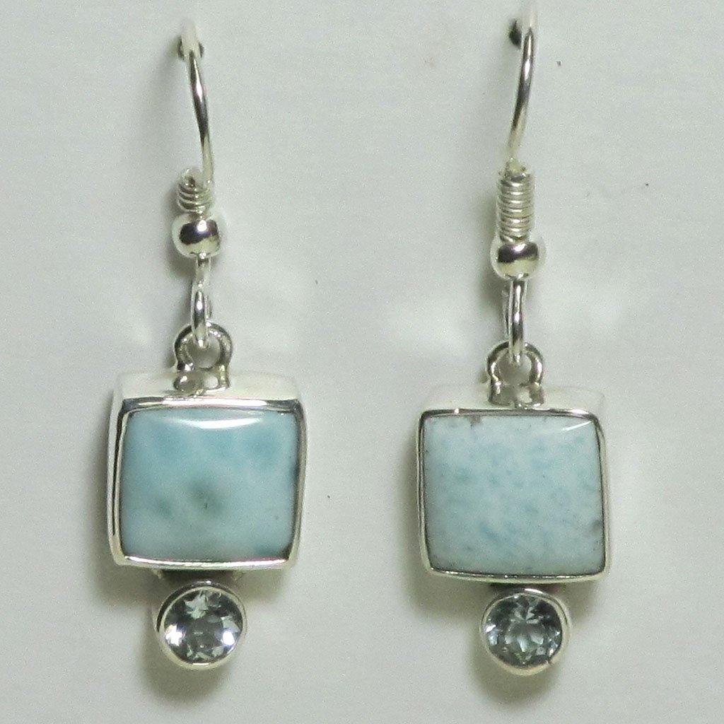 A very beautiful pair of earrings made with polished sky blue larimar that is accented with faceted blue topaz and... Read more
