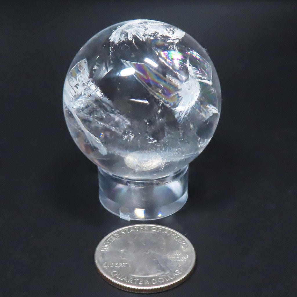 A wonderful clear polished quartz crystal sphere from Brazil that has a few small veils. Each of these veils reflects... Read more