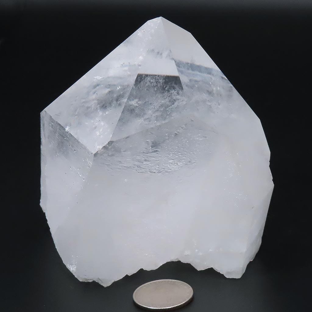 A fabulous high quality clear large thick quartz crystal point from Arkansas that has a large rainbow area, a self-healed... Read more