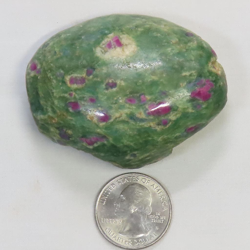 A wonderful small 1-side hand polished slab of ruby and green fuchsite from India that has lots of rubies visible.... Read more