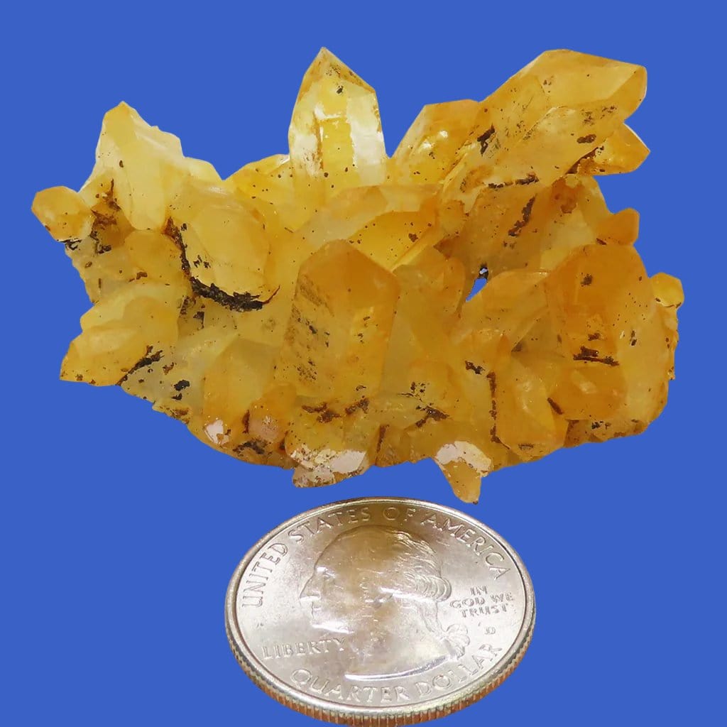 A marvelous small Golden Healer quartz crystal cluster from Arkansas that has some rainbow iridescence, a gold iron oxide coating... Read more