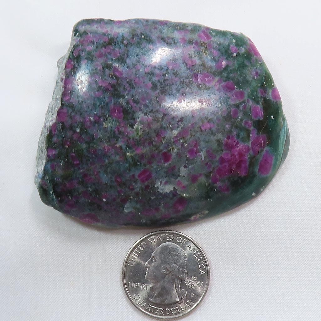 A fabulous 1-side polished slab of ruby and green fuchsite from India that has lots of rubies visible and lots... Read more