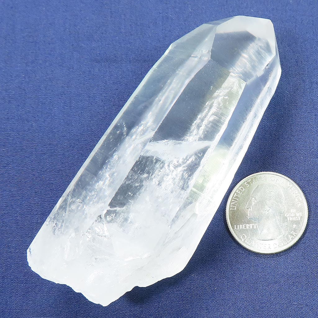 A fantastic clear Lemurian seed quartz crystal point from Brazil that has a grey manganese phantom, a long etched key... Read more