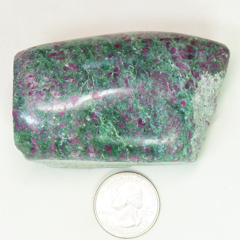 A beautiful 1-side polished slab of ruby and green fuchsite from India that has lots of rubies visible. This beauty... Read more