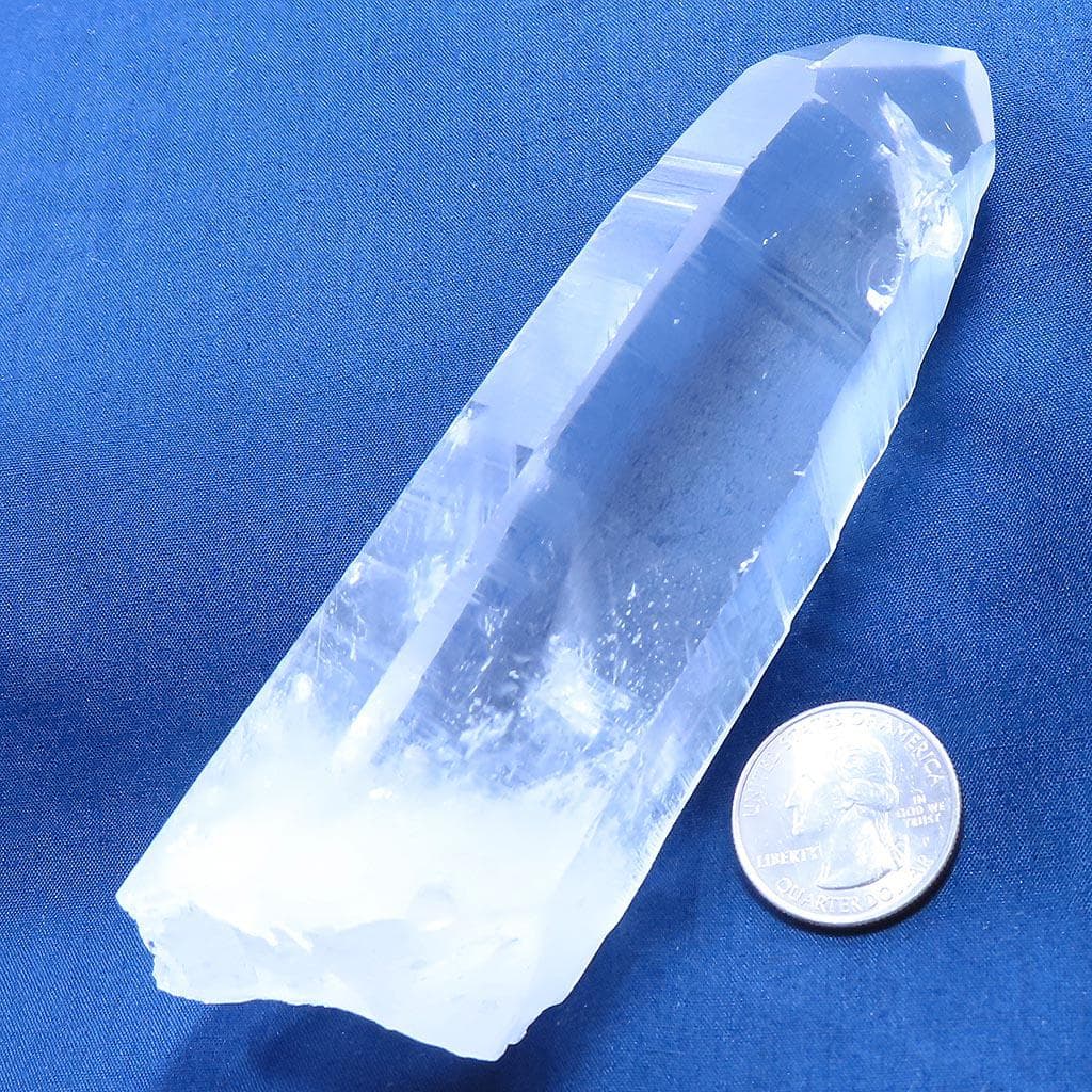An outstanding larger clear Lemurian seed quartz crystal point from Brazil that has lightly striated sides, polished faces, and a... Read more
