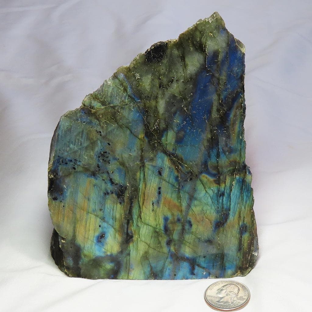 An outstanding 1 side polished slab of labradorite from Madagascar that displays lots of gold/blue color flash. It has a... Read more