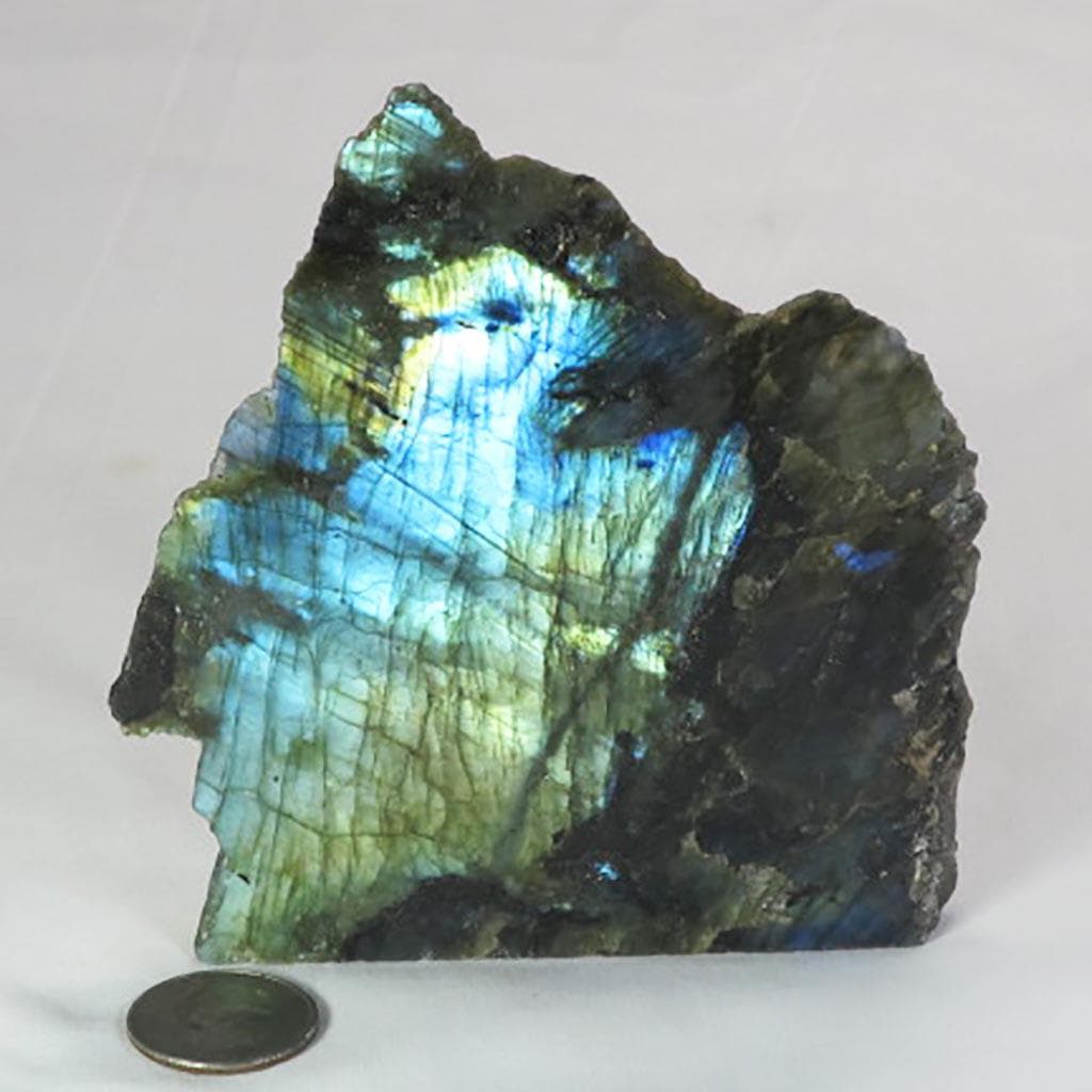 A fantastic 1 side polished slab of labradorite from Madagascar that displays plenty of gold/green/blue color flash. This labradorite also... Read more