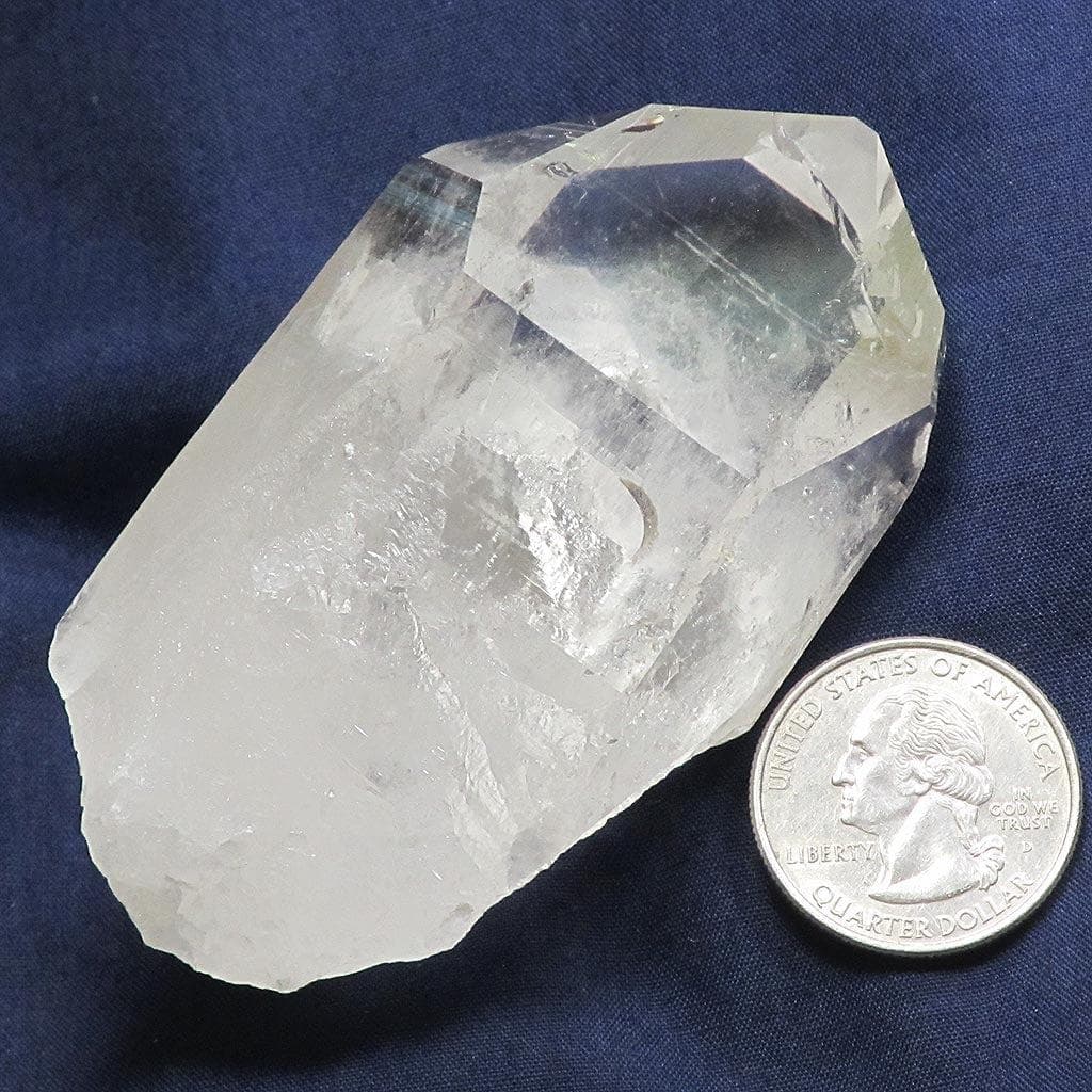 A marvelous clear quartz crystal point from Arkansas that has a large 8 sided grounding main face, a small rainbow... Read more