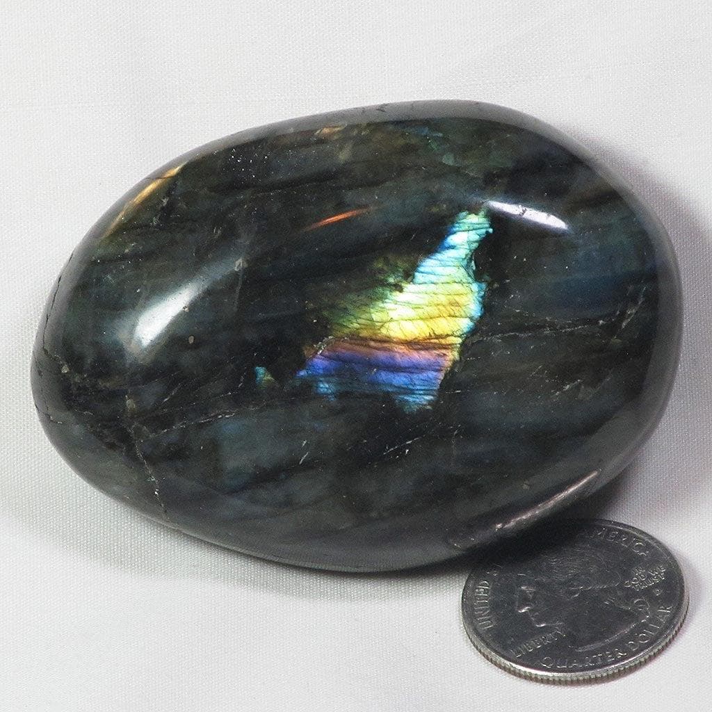 A fabulous hand polished labradorite palm stone from Madagascar that has plenty of gold/green/purple color flash on one side and... Read more