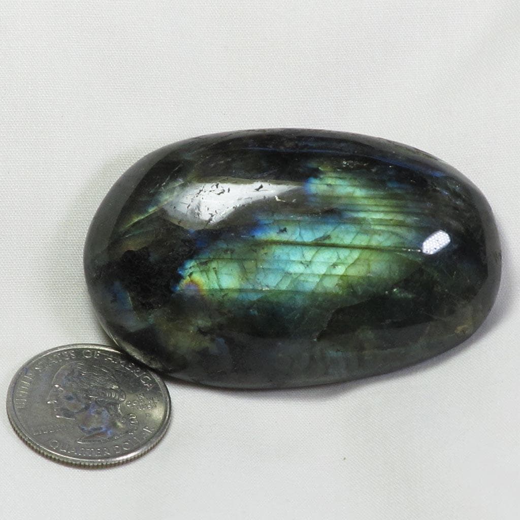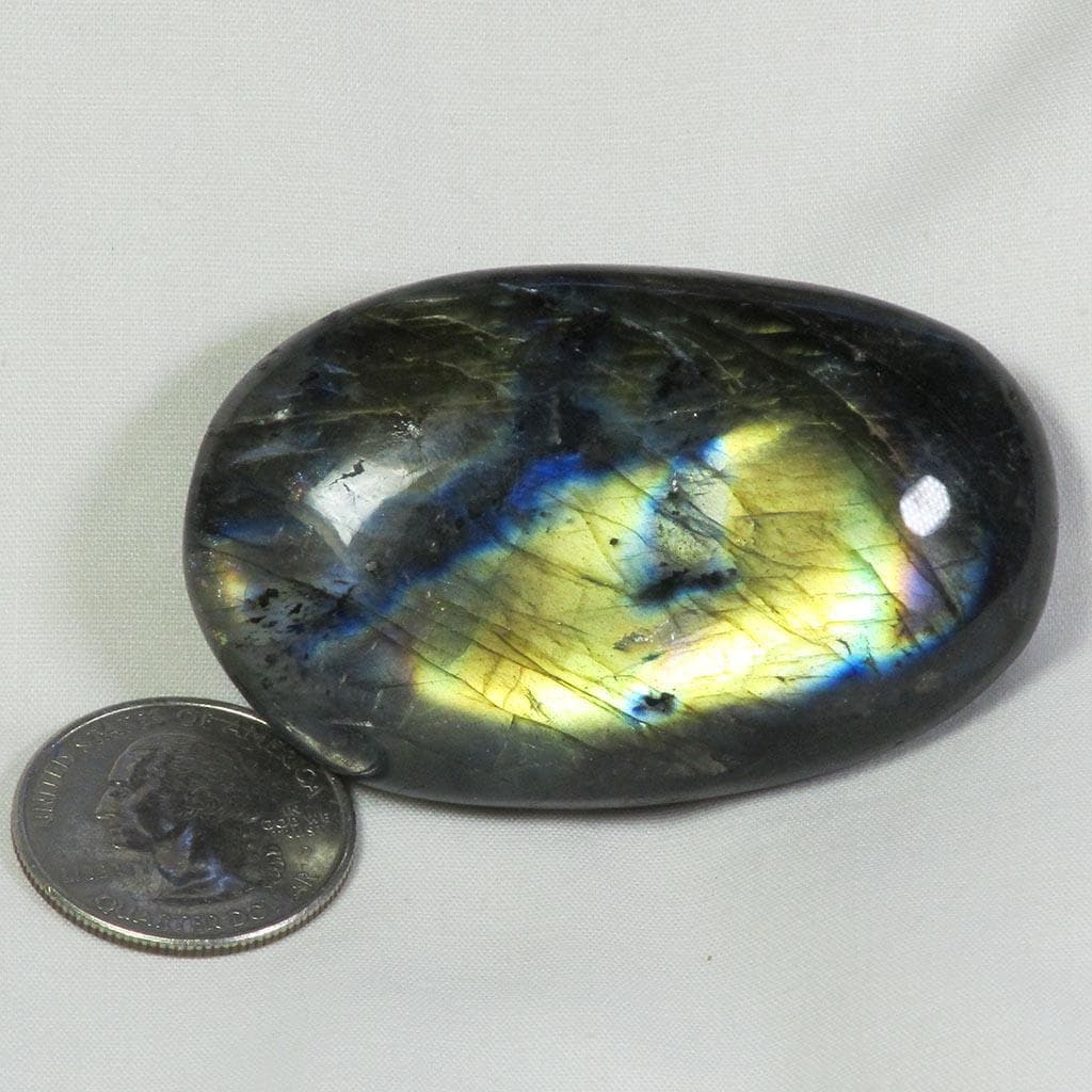 A marvelous hand polished labradorite palm stone from Madagascar that has plenty of gold/blue color flash on one side and... Read more