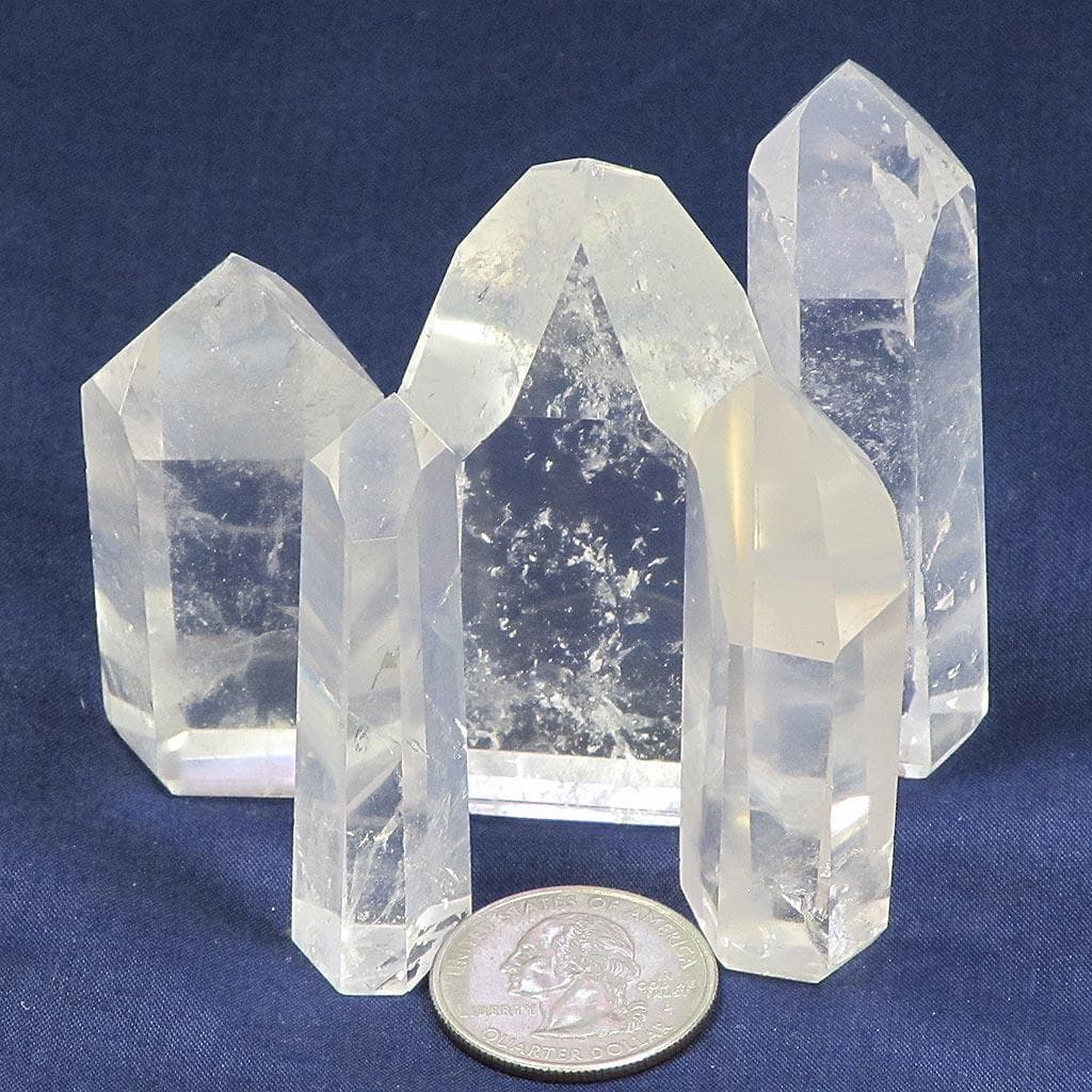 A marvelous selection of 5 polished clear quartz crystal points from Brazil. This selection weighs 7 oz. They range in... Read more