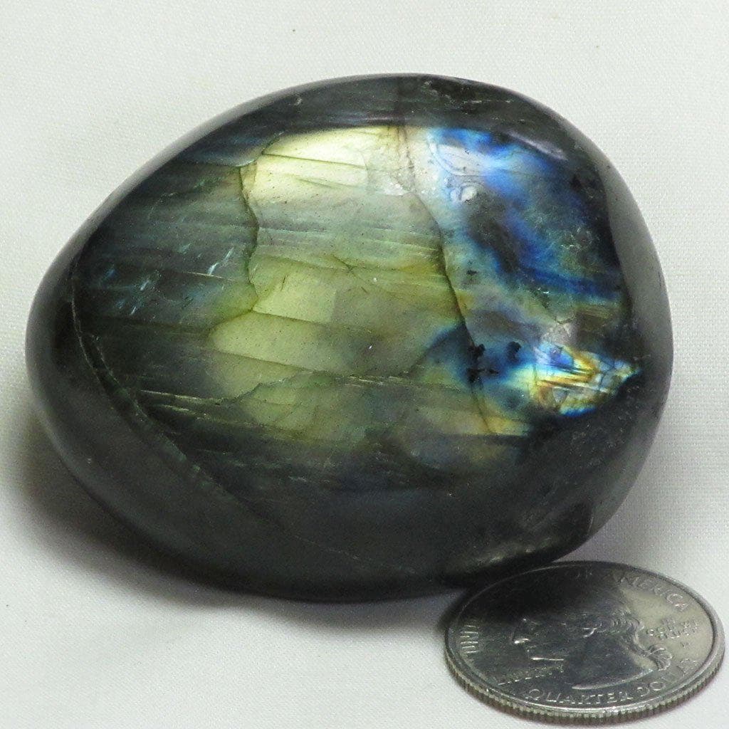 A beautiful hand polished labradorite palm stone from Madagascar that has plenty of gold/blue/green color flash on one side and... Read more