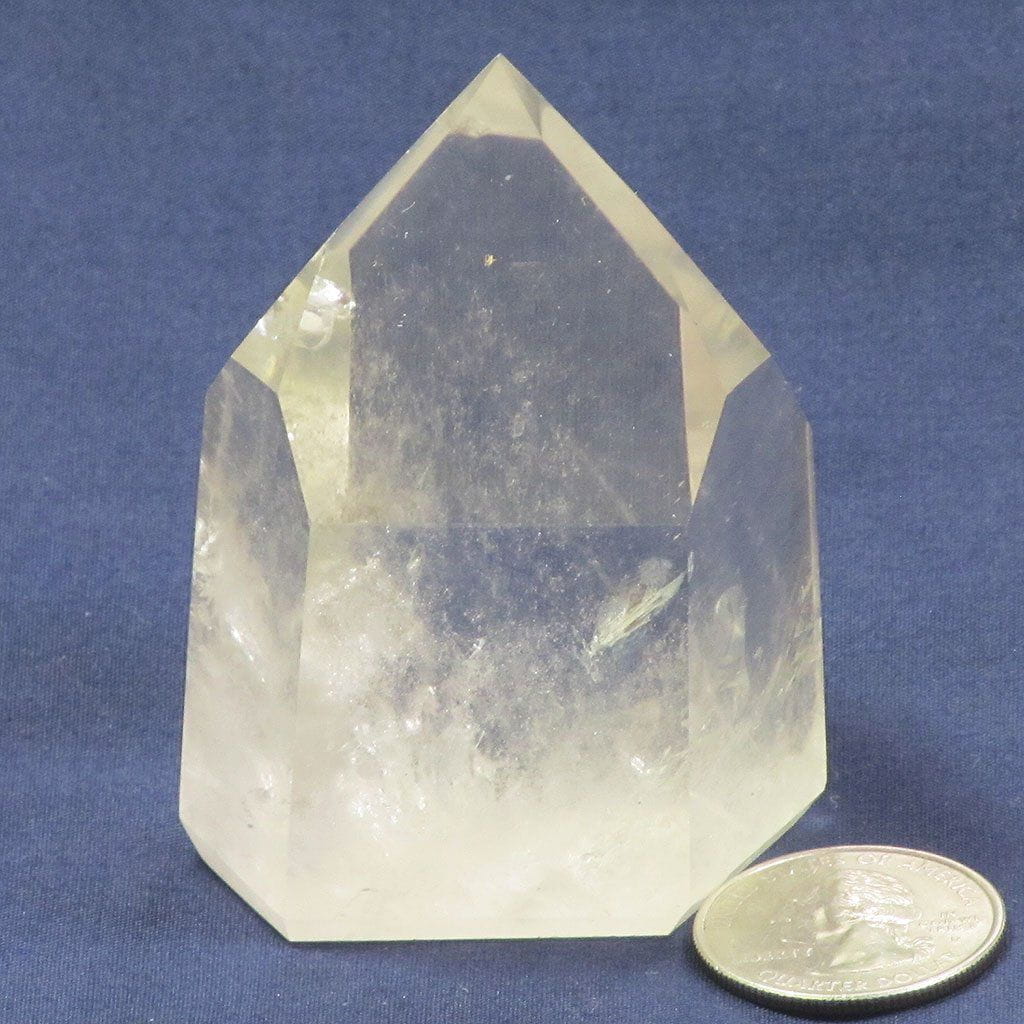 A wonderful polished clear quartz crystal point from Brazil that has a Dow (7-3-7-3-7-3) transmitter termination and a beautiful rainbow.... Read more