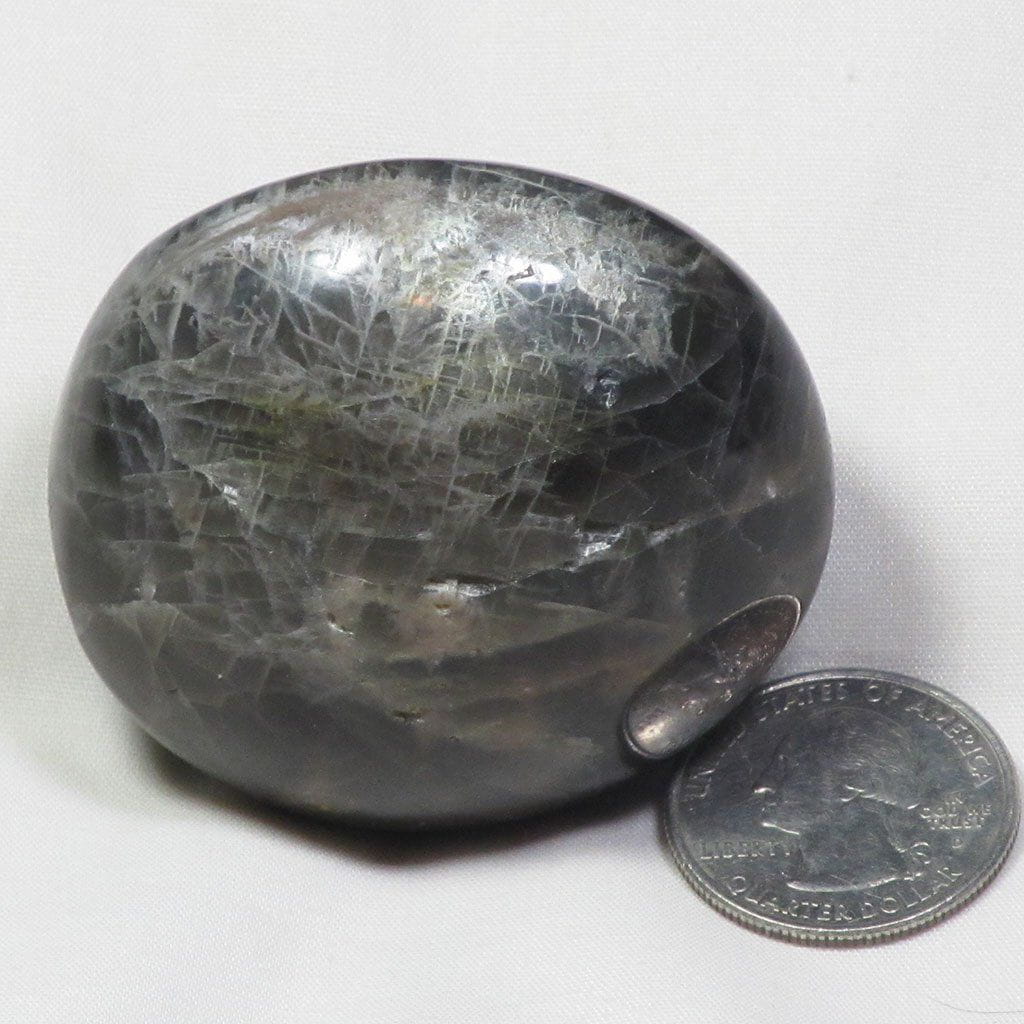 A fantastic hand polished black moonstone palm stone from Madagascar that has good schiller. Size: 2 1/8" long x 2"... Read more