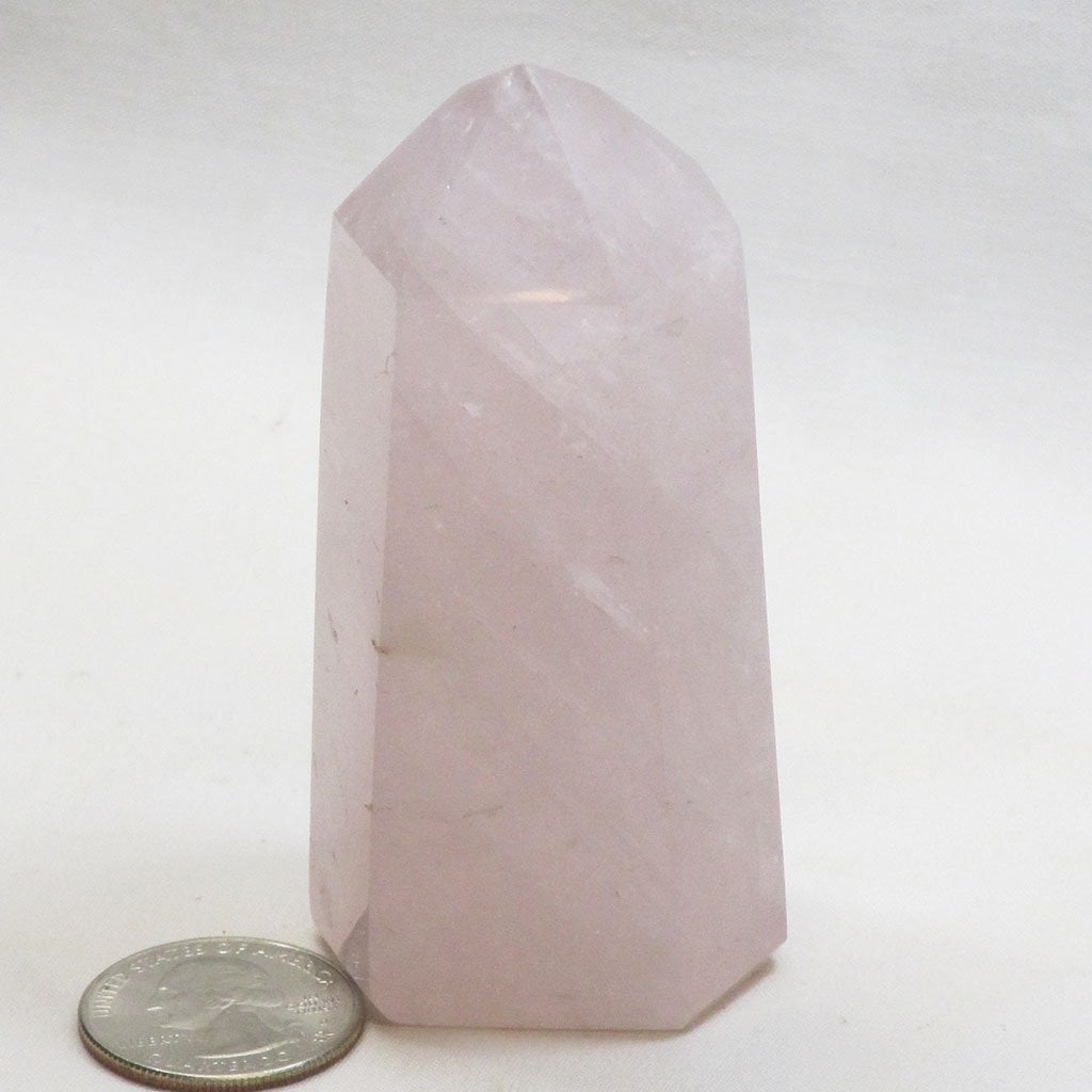 A fabulous polished rose quartz crystal point from Madagascar. Size: 1 1/2" long x 1 1/8" wide x 3 1/4"... Read more