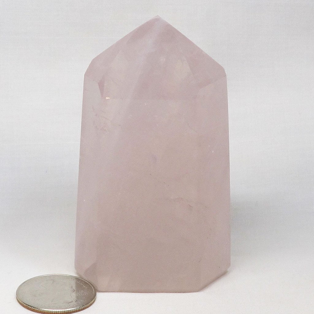 A wonderful polished rose quartz crystal point from Madagascar. Size: 1 3/4" long x 1" wide x 3 1/4" tall. Read more